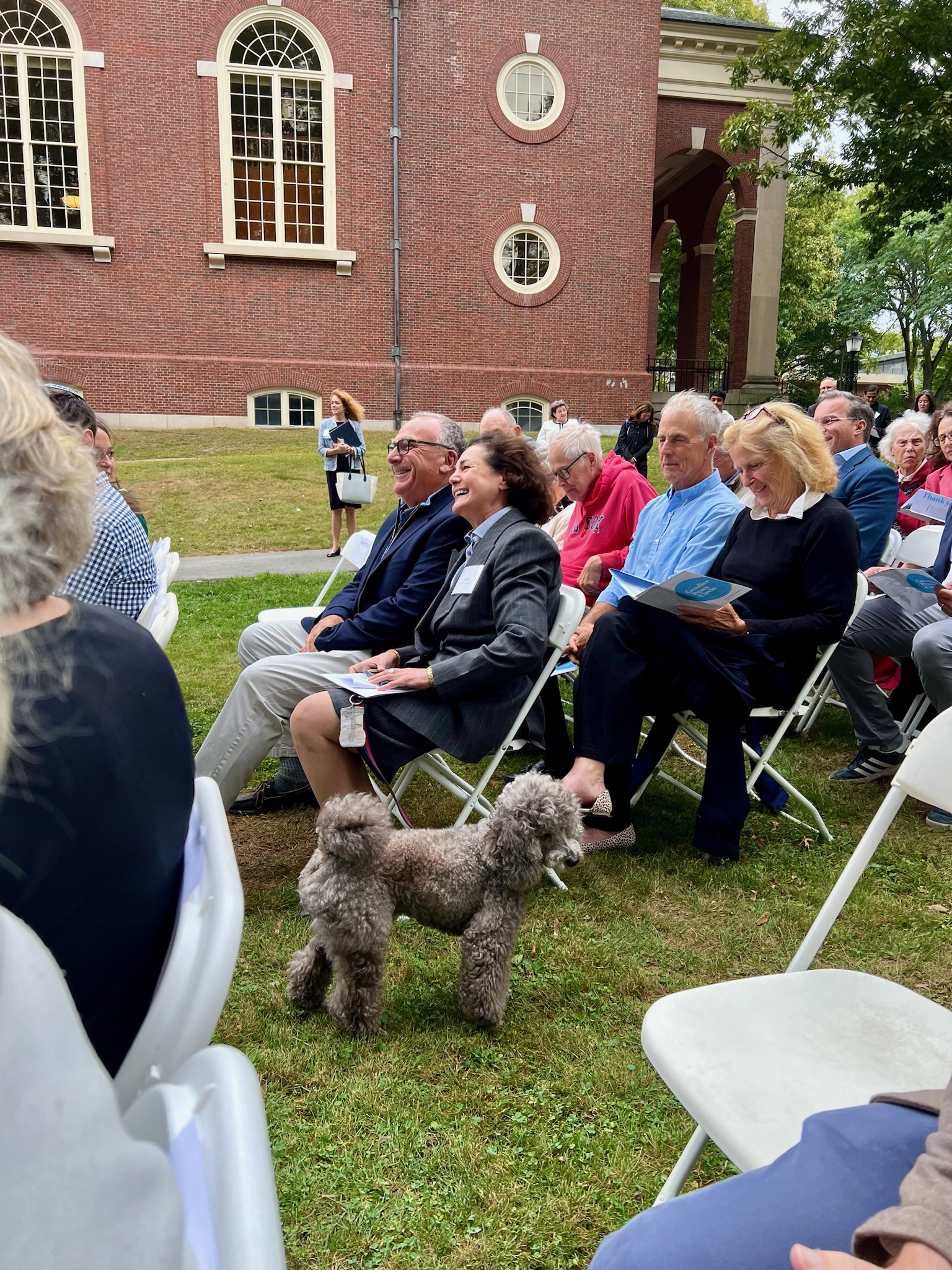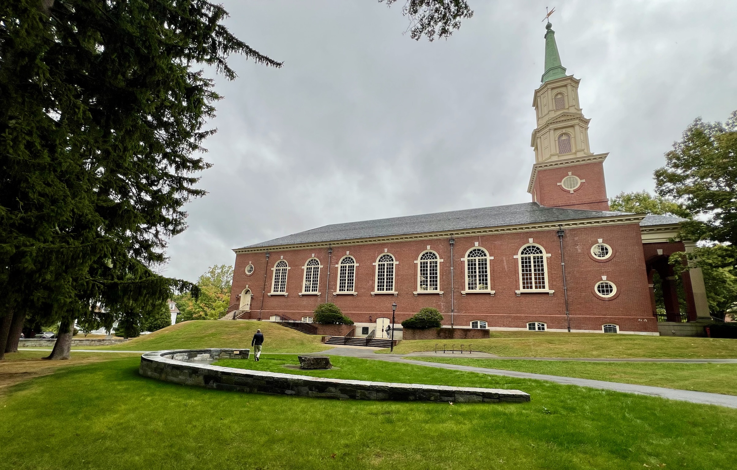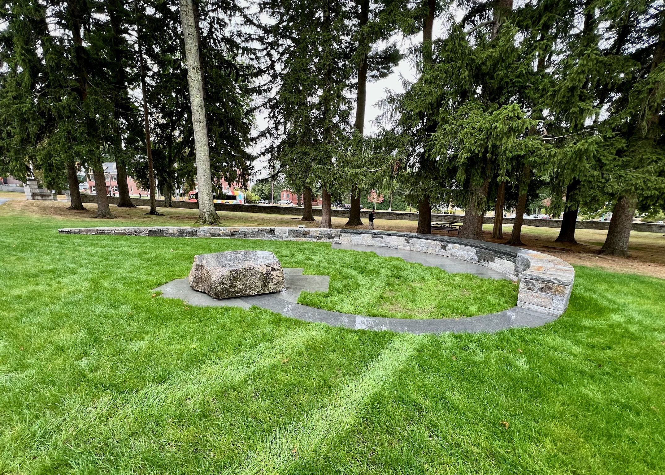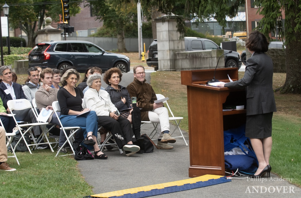 On September 20, 2024, friends and family of Rabbi Everett Gendler gathered together at Phillips Academy in Andover, Massachusetts — where Everett served as the school’s first Jewish Chaplain from 1977 to 1995 — for the dedication of the Gendler Peace Circle. Following Rabbi Gendler’s death on April 1, 2022, former Andover students Joe Tatelbaum and Jana Paley began talking about a way they could honor the memory of their beloved rabbi and teacher, together with his wife of 58 years, Mary. They sketched out an outdoor space that could be used as a place of reflection, meditation, learning, socializing, and contemplation. When they proposed their idea to Andover leadership, they were met with enthusiasm and support — and alumni, colleagues, and other community members eagerly advanced the project, which has taken the form of an outdoor functional sculpture in a pine grove beside Cochran Chapel, underneath Everett’s former second-story office window. The Academy leadership, including Head of School Dr. Raynard Kington and Secretary of the Academy Thom Lockerbee, helped to lead a beautiful dedication ceremony, which also included remarks from (among others) current Jewish Chaplain Rabbi Joshua Greenberg and Everett’s daughter Tamar Szabó Gendler. This collective desire to name a space in Everett’s honor reflects what we all know about him — he touched the lives of those with whom he worked and interacted. The Gendler Peace Circle is visually beautiful, organically inspired, and will be used in practical application. For those who knew Everett, that’s an important and fitting combination.
